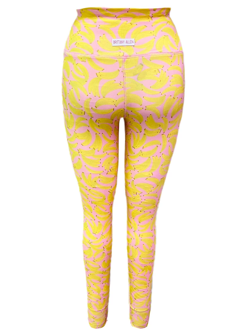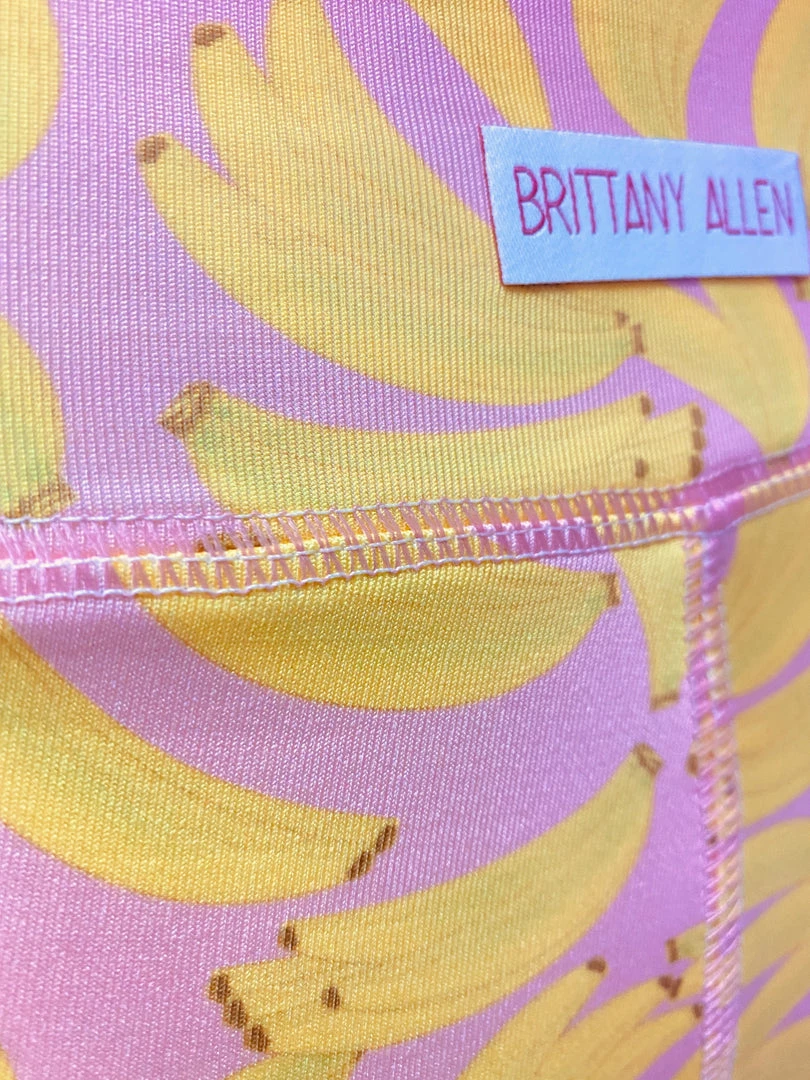 The Banana Legging is made with our brand’s exclusive banana printed spandex, looped coverstitching on the waistband and crotch seams, and features a built in waistband.Â