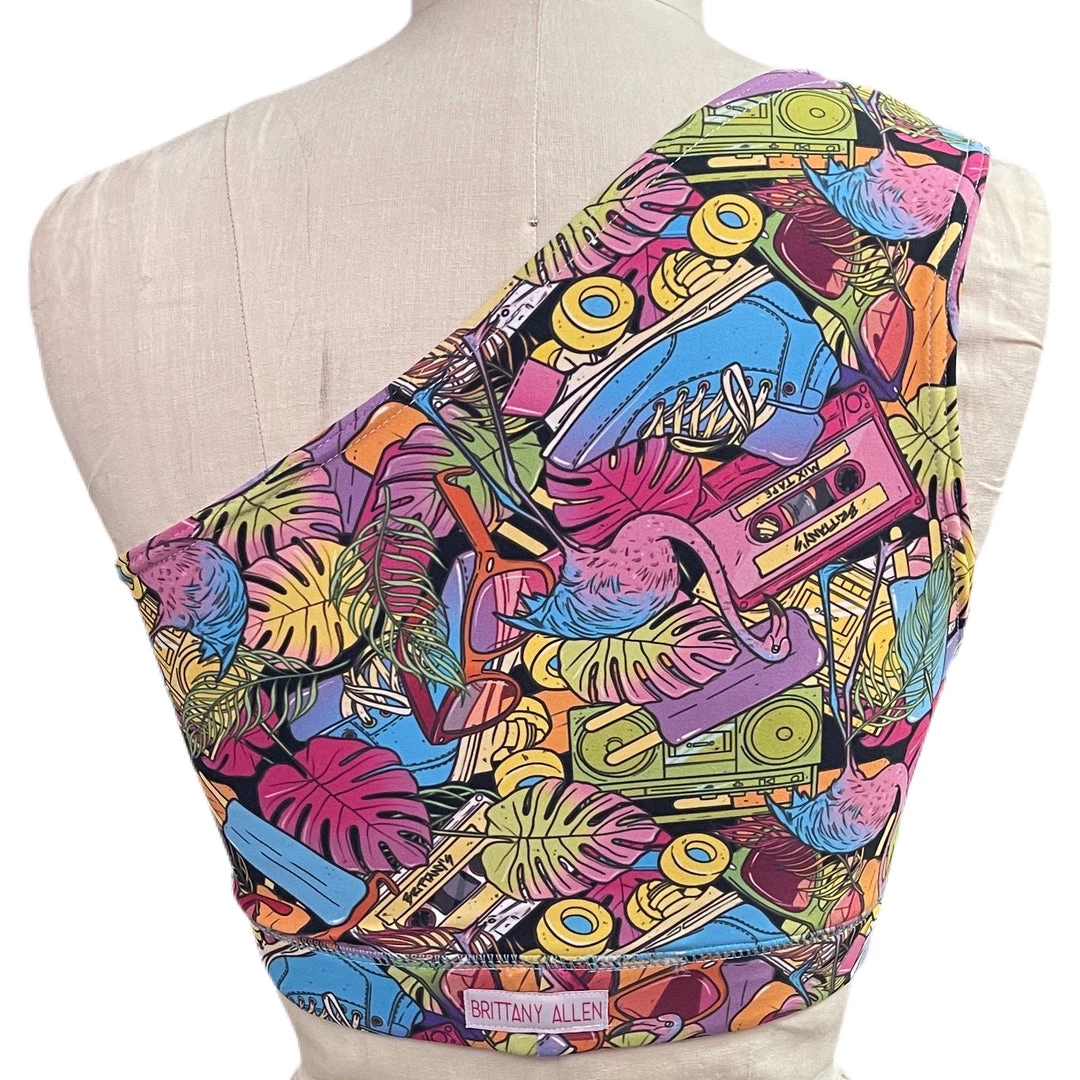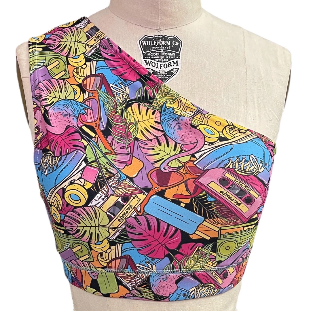 The Miami Shoulder Sports Bra is made of a matte spandex that is smooth and soft as butter. The bra features an encased elastic waistband, ruffle fully lined interior, and coverstitching on the band seam to ensure no elastic twists and turns.