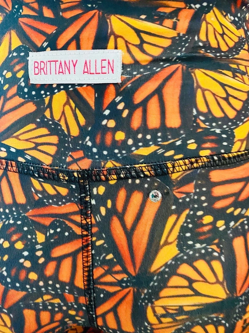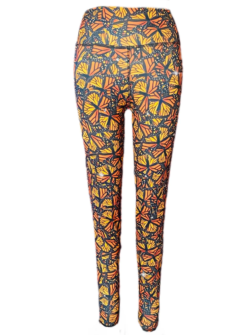 This monarch legging is made with our brand’s exclusive monarch printed spandex, built in waistband, and topped with scattered rhinestones for a little sparkle in your life.