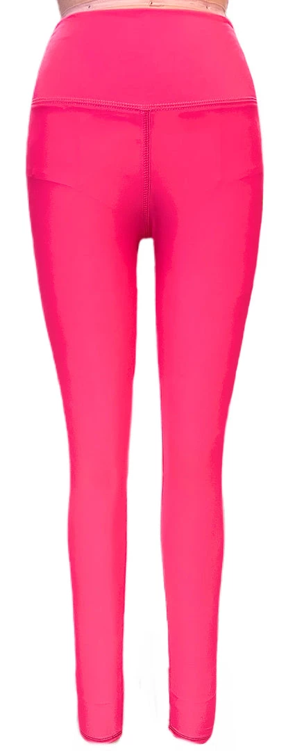 The “Neon Pink Leggings” are made with super soft matte milliskin tricot 4-way stretch fabric. These leggings feature a looped coverstitching on all seams and has a control top waistband.Â