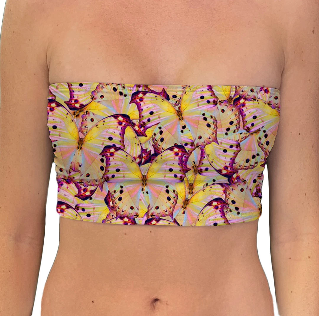 Brittany Allen Pink Butterfly Bandeau Swim Top SWIMWEAR