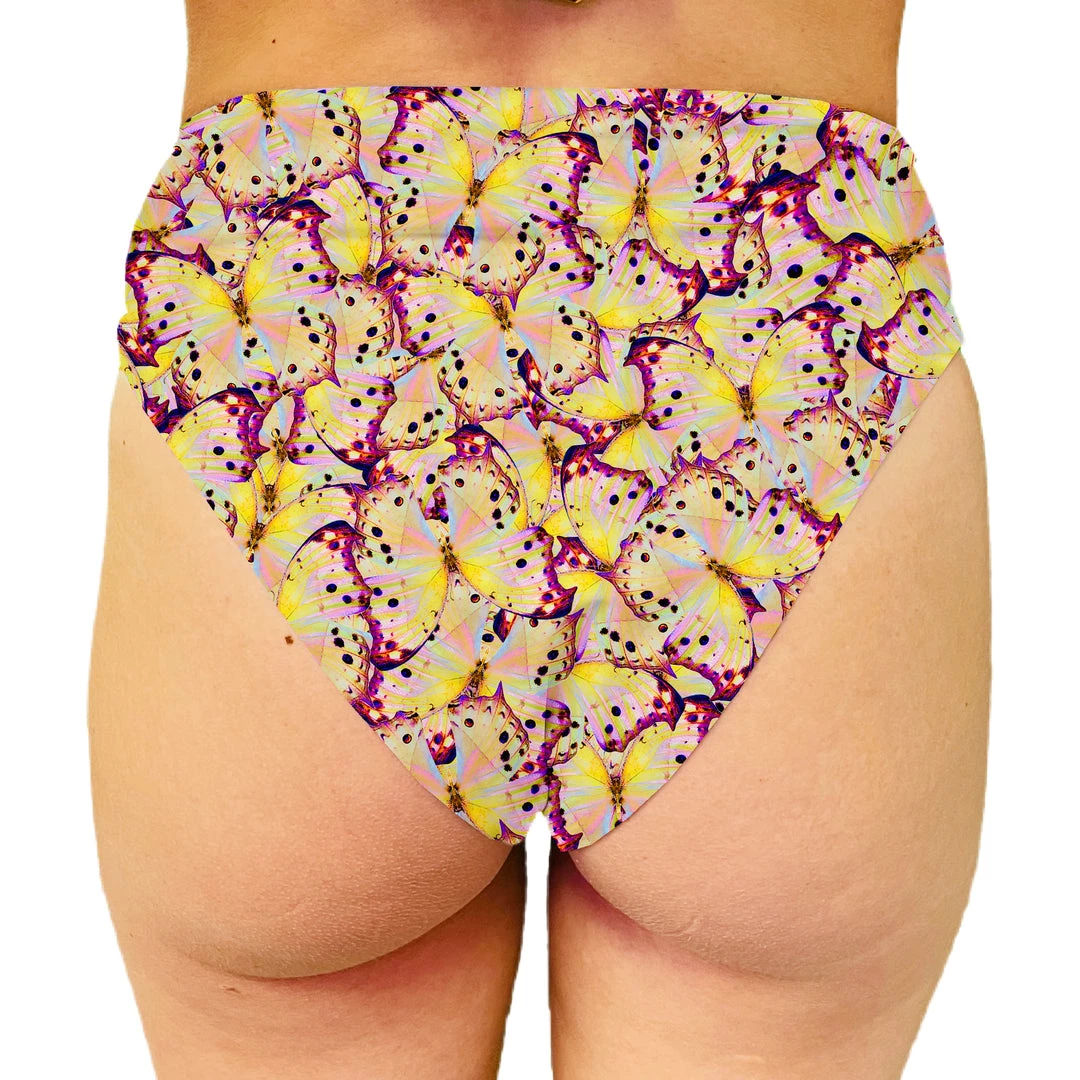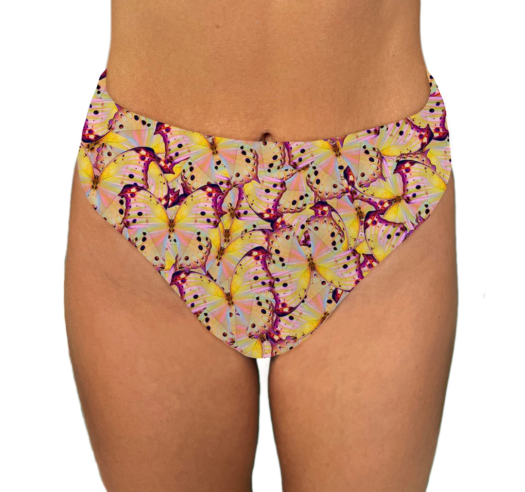 This swimsuit features a high waist on the front and back. The leg openings are a little higher cut to expose more leg and include elastic in the leg opening for a better fit.Â
