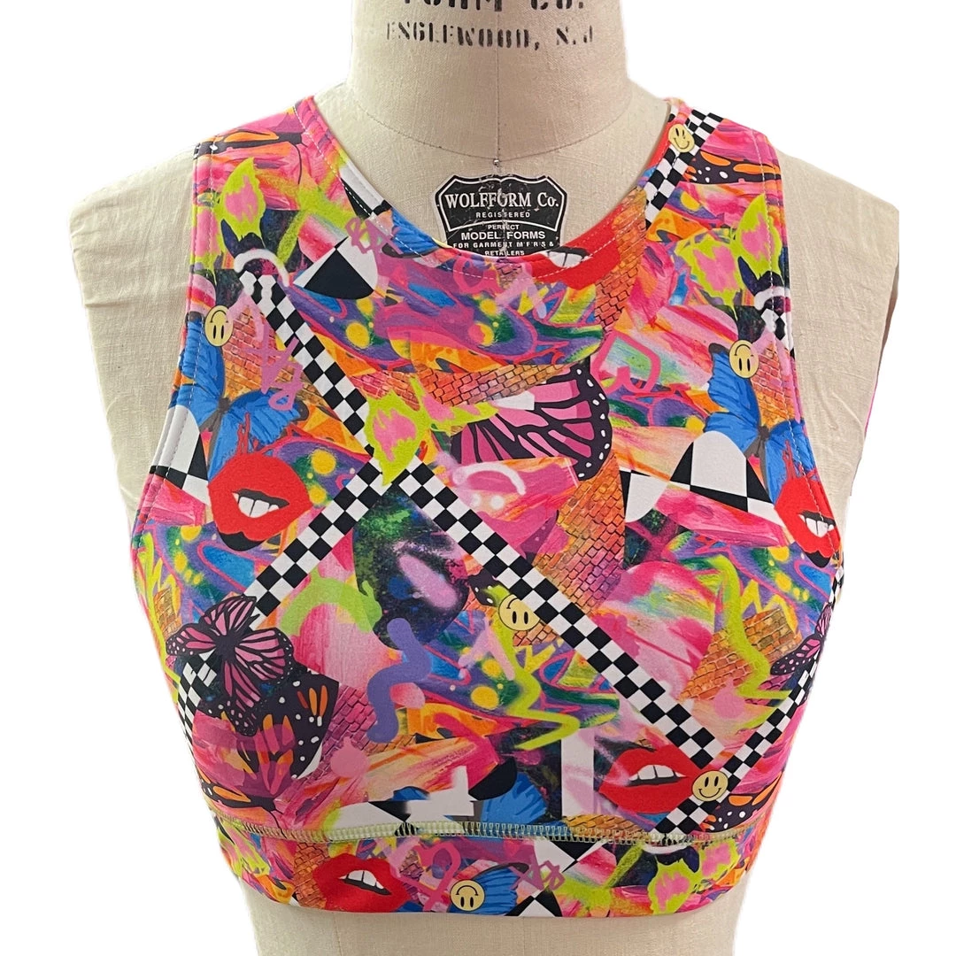 The Rebel Crew Neck Bra is made of a matte spandex that is smooth and soft as butter. The bra features an encased elastic waistband, fully lined interior, and coverstitching on the band seam to ensure no elastic twists and turns.