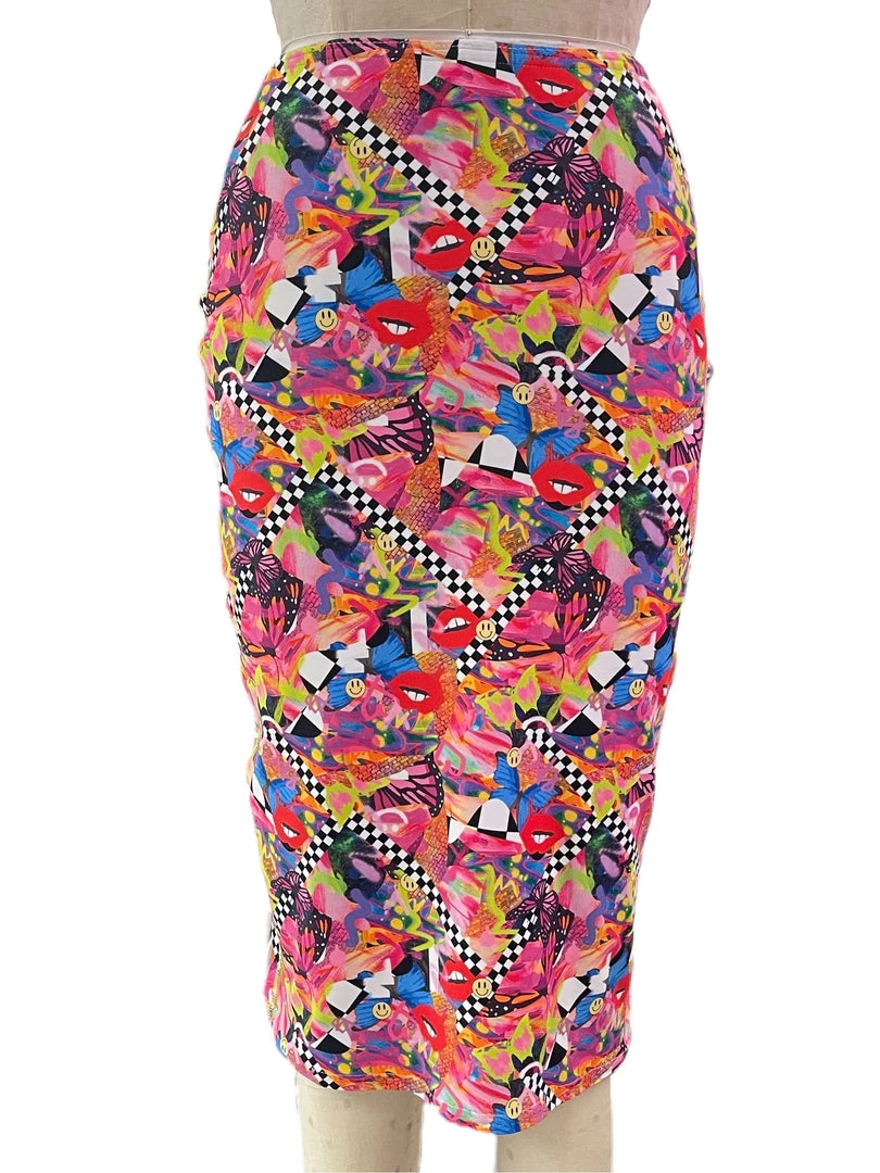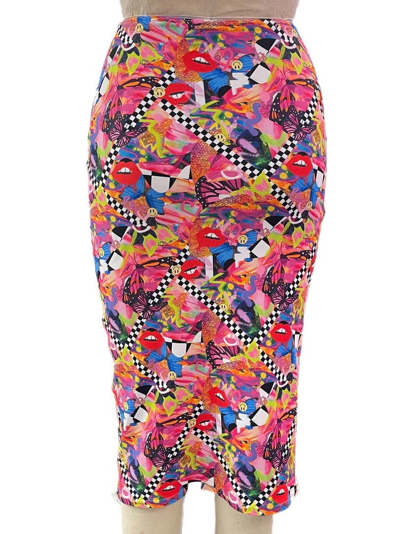 The Rebel Spandex Pencil Skirt is simply a slip on skirt made in a printed spandex that hugs the hips and legs. Skirt is a slip on, and there are no closures. It’s so easy to wear with just about any outfit. Fit model height is 5’6″ and skirt hits a little past the knee caps.