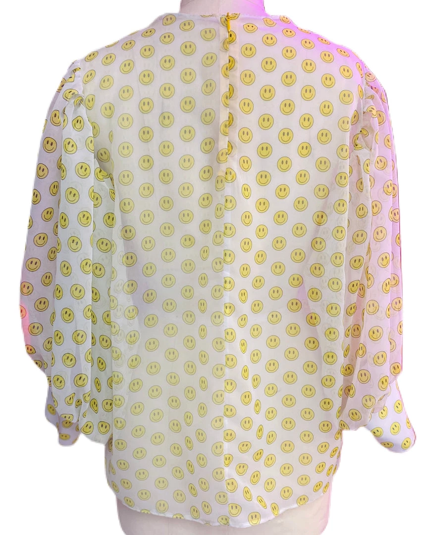 Brittany Allen Smiley Face Sheer Blouse TOPS