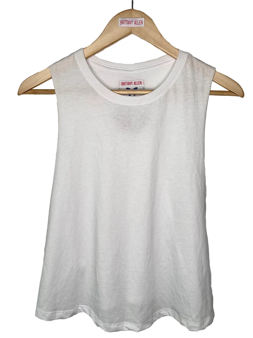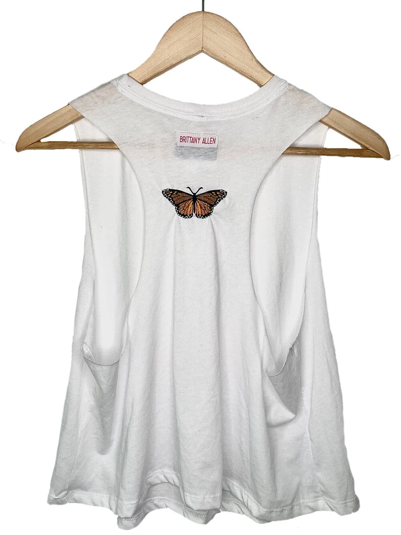 Our “Butterfly Embroidered Cropped Tank” is embellished with a unique breed of butterflies on each colorway. The embroidery is rich and dense for a more realistic look. This tank is a cropped style fit with low, raw armholes, and raw hem. Fit is meant to be slightly big. Comes in 4 different colorways. All embroidery is done in house by the Brittany Allen team.