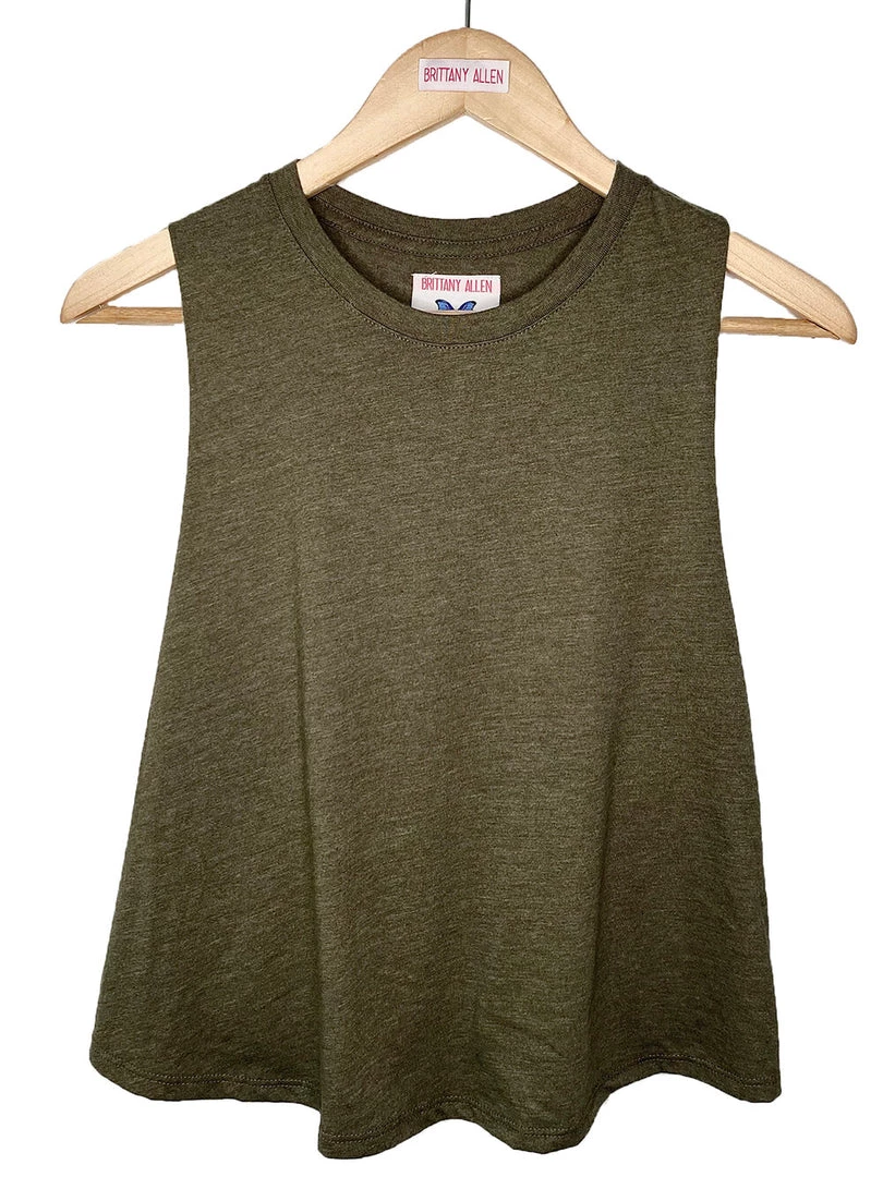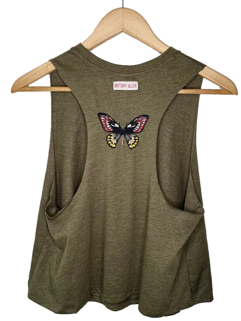 Shop Brittany Allen Olive Butterfly Embroidered Cropped Tank